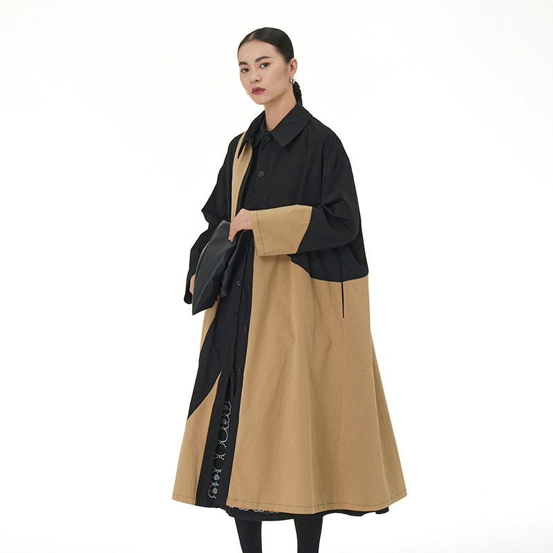 韩系气质原创拼接撞色外套大码女装宽松显瘦潮