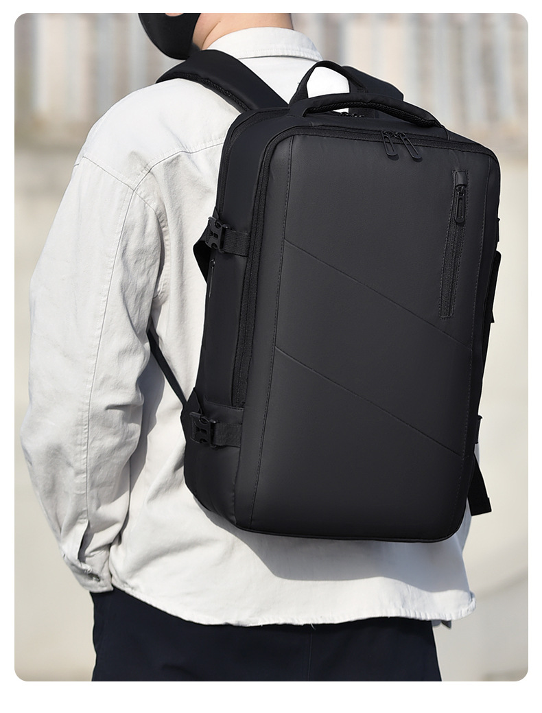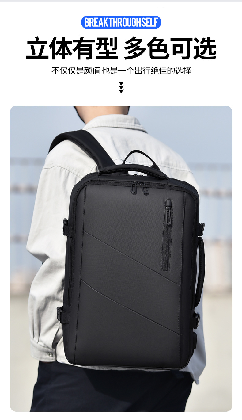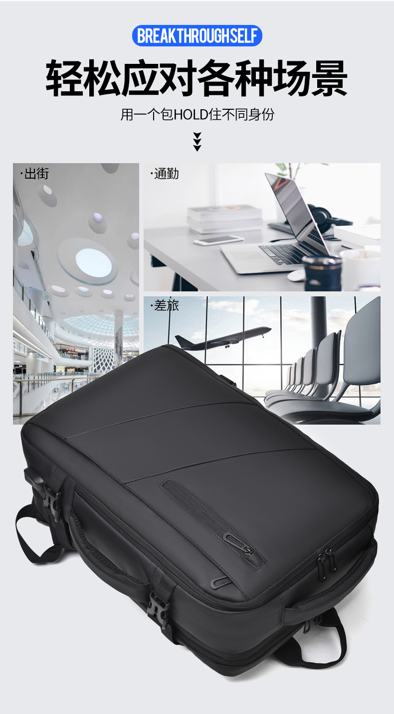 新款简约超大容量旅行背包可扩容商务出行USB充电双肩背包电脑包