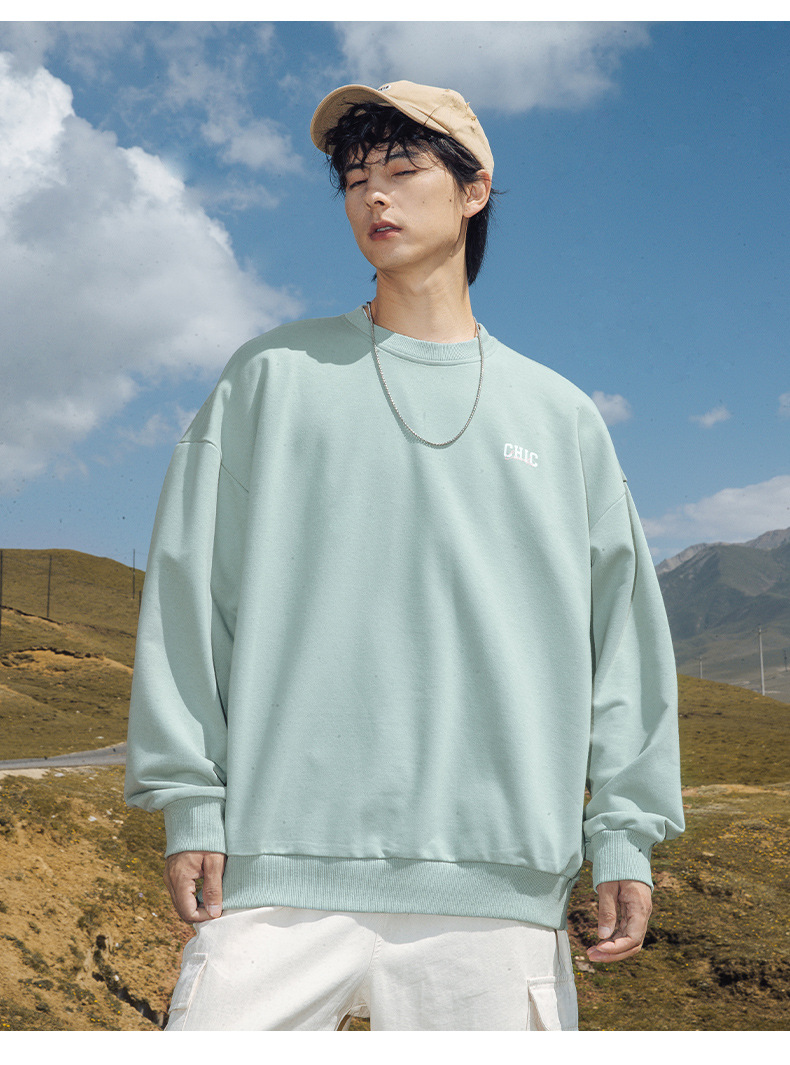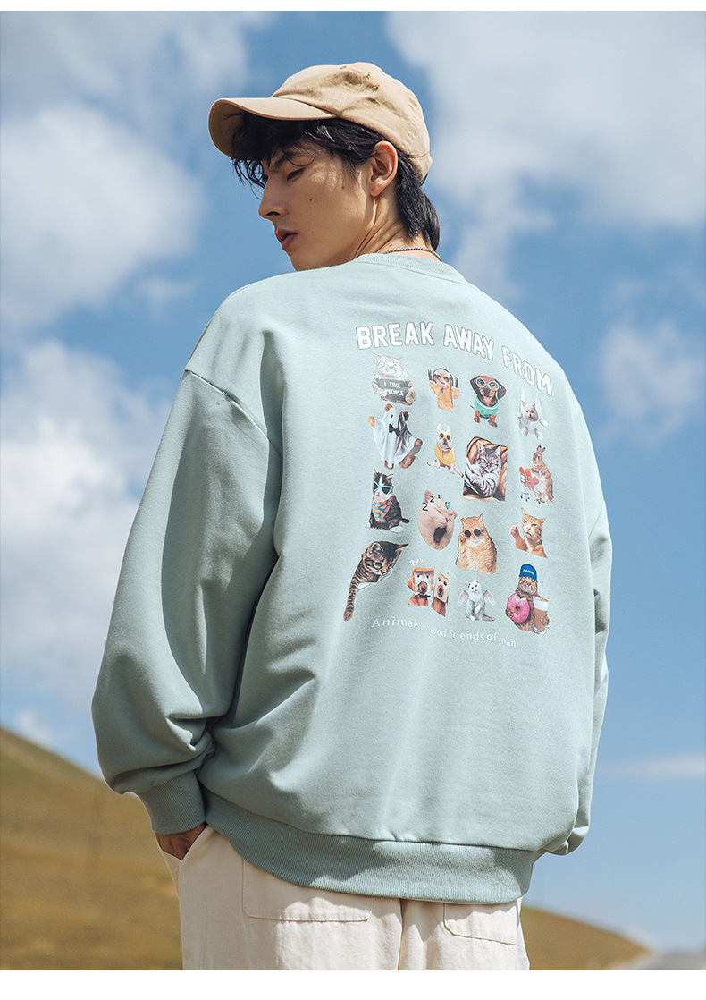 韩路男装 趣味卡通印花美式卫衣男新款重磅宽松情侣圆领外套