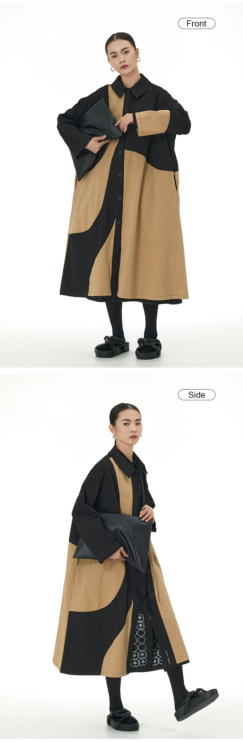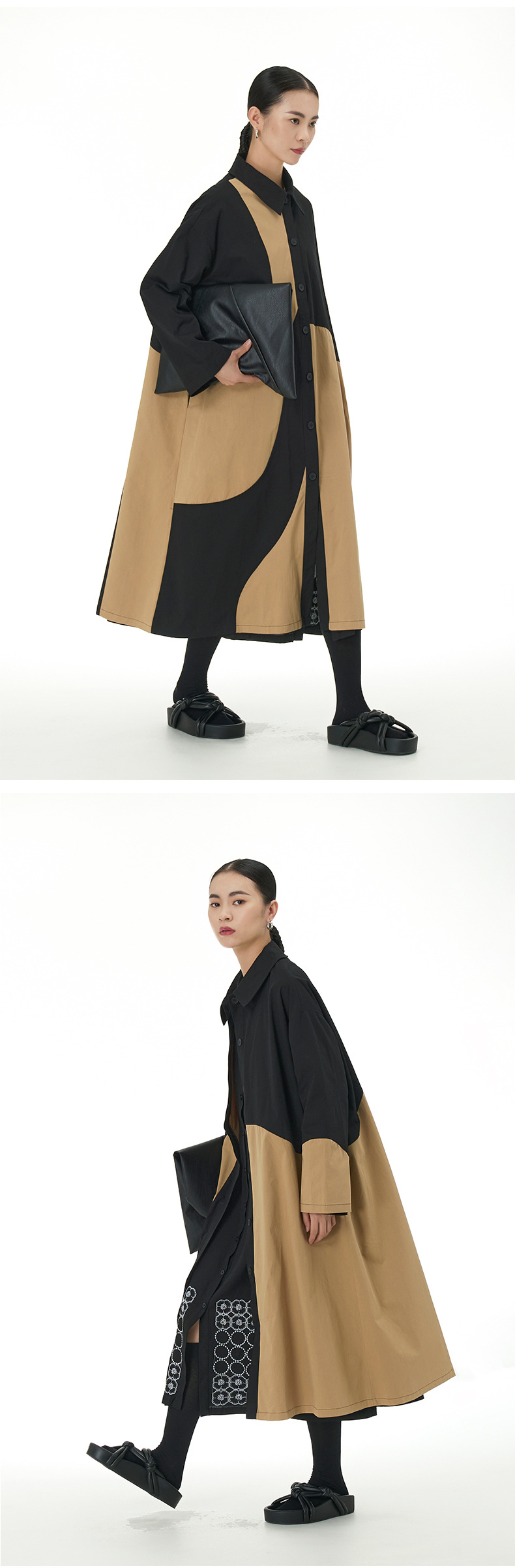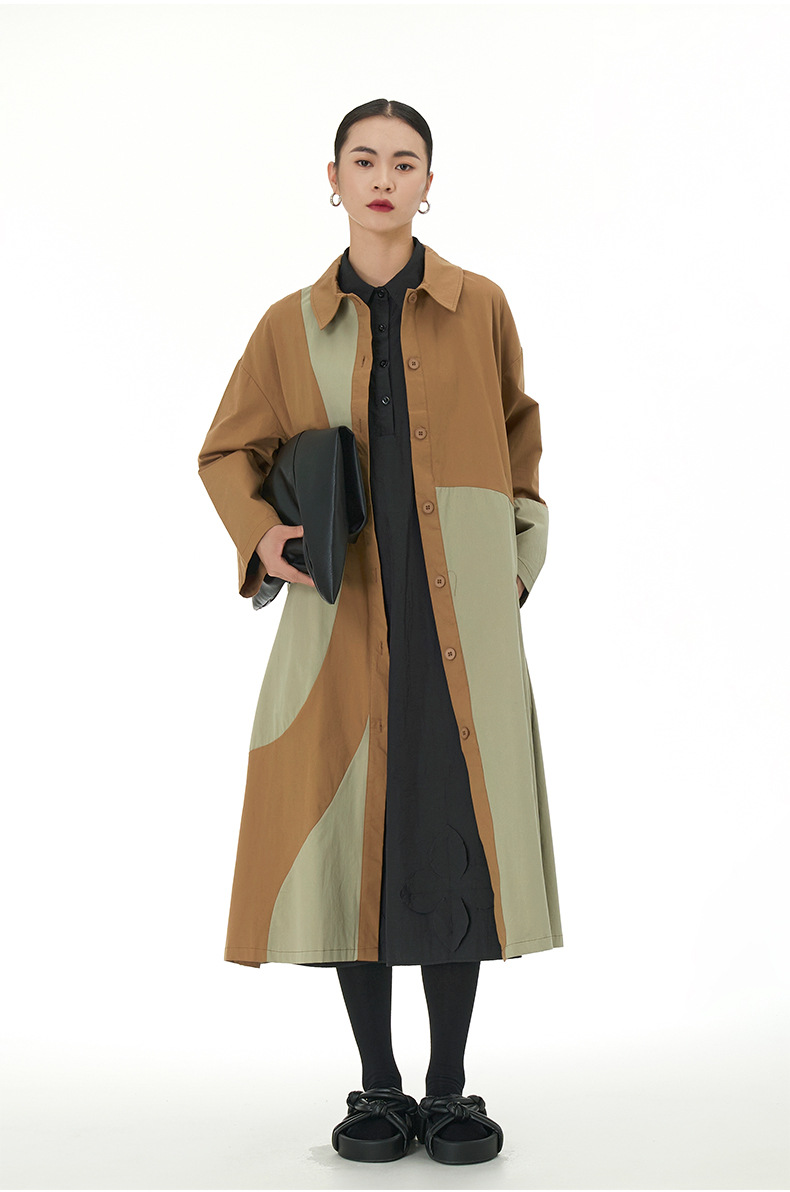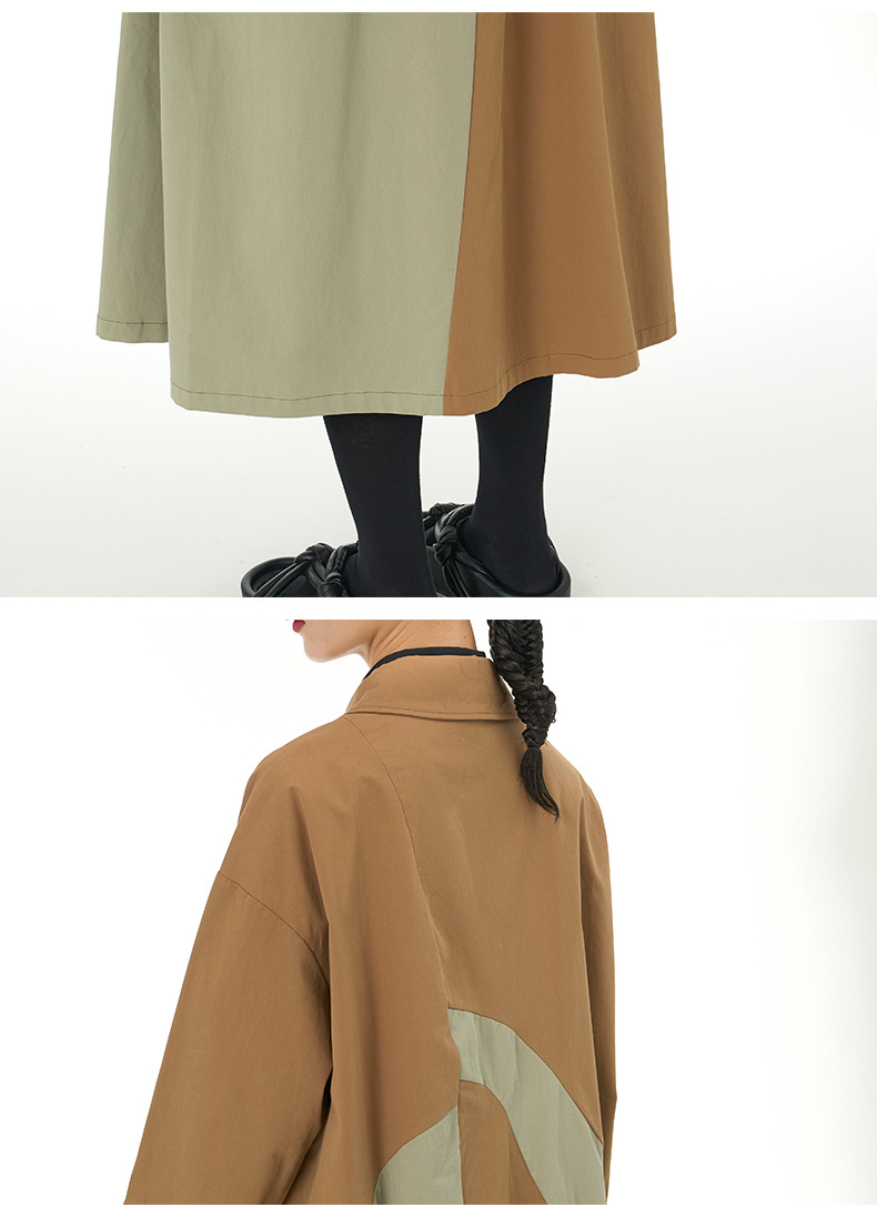 韩系气质原创拼接撞色外套大码女装宽松显瘦潮
