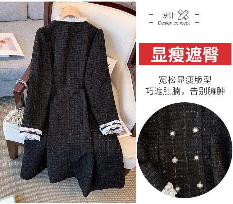 女装小香风长袖连衣裙胖mm中长裙气质