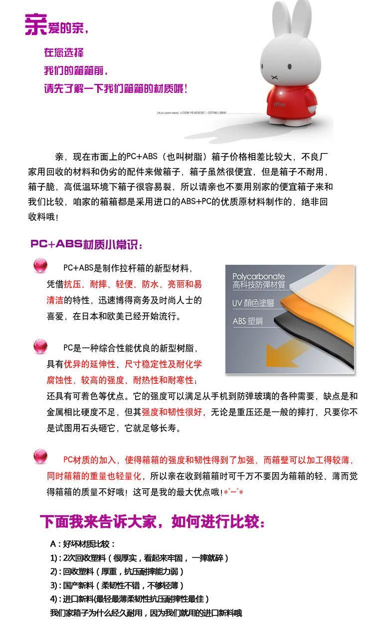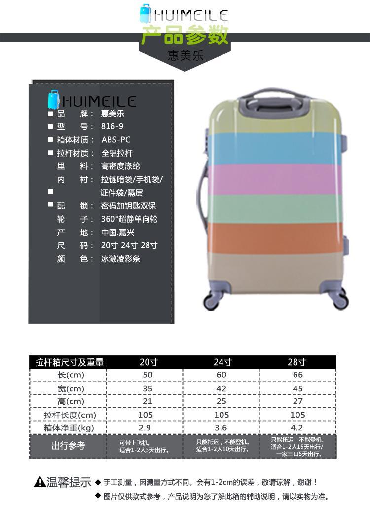 (长宽高尺寸只是参考尺寸,不同品牌拉杆箱尺寸会略有不同,主要是利用三边之和来判断。)