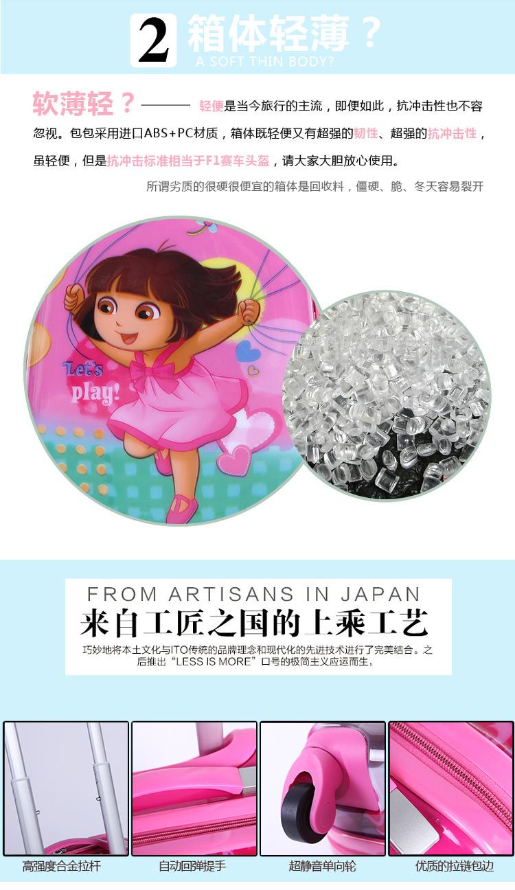 小店是以工厂店,厂家直销。支持网供一件代发,诚招各级代理合作,支持定制LOGO商标制作,一件代发默认快递是中通快递(运费标准联系店主咨询)有本厂吊牌,可代写贺卡。箱体全部采用全新材料一次成型,箱体抗压,耐摔,防水,靓丽,易清洁。箱子主体配件体积每一个细节全部为宝宝的使用感受而设计,箱体的卡通图案明艳活泼,为宝宝带来方便的同时,也迎来超高回头率。 支持定制,欢迎儿童摄影店老板,母婴馆,早教中心,各种培训机构前来洽谈。本厂对LOGO图案定制经验丰富,效果良好。