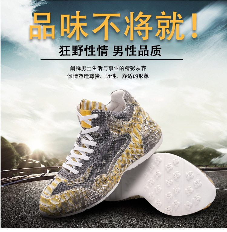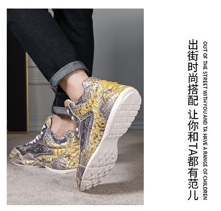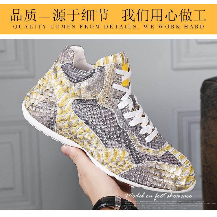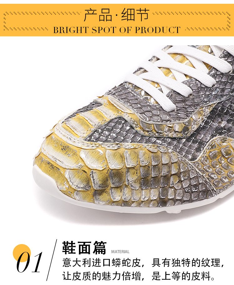 意大利进口蟒蛇皮真皮男鞋运动休闲鞋时尚潮流皮鞋高档鞋子