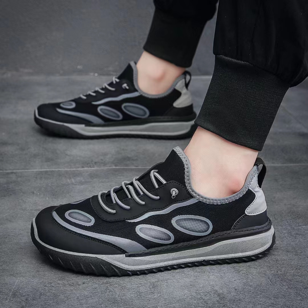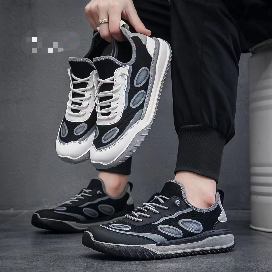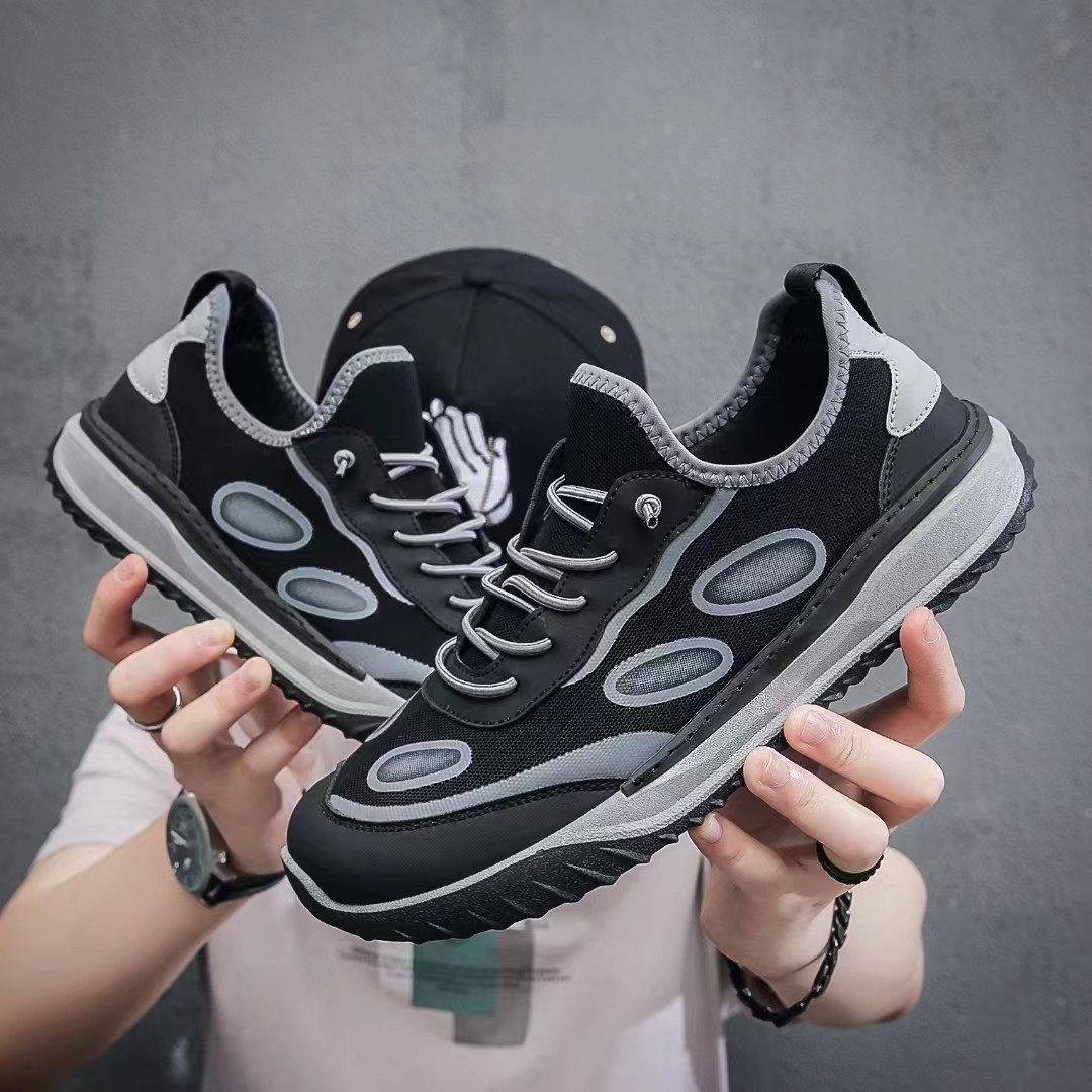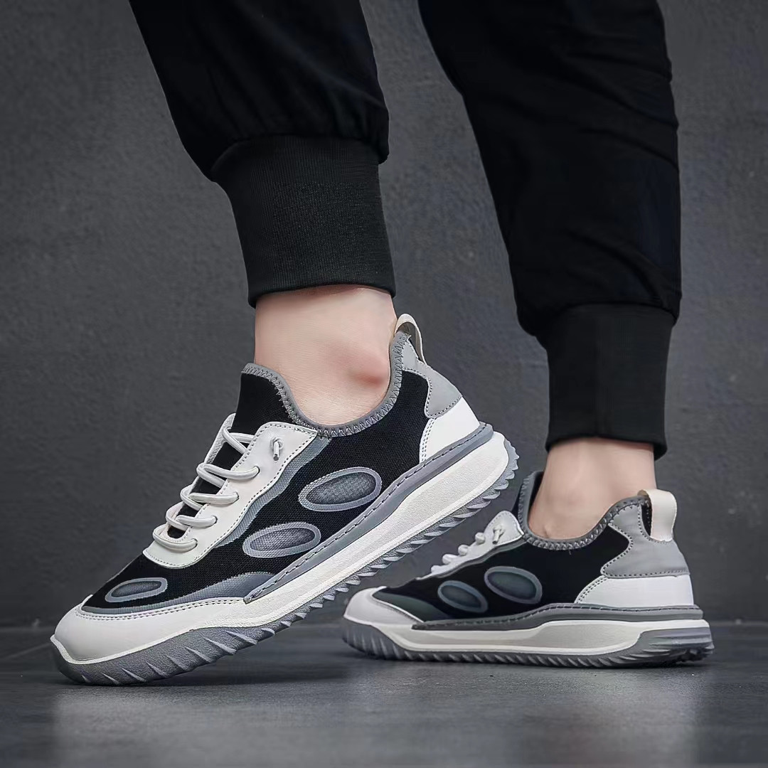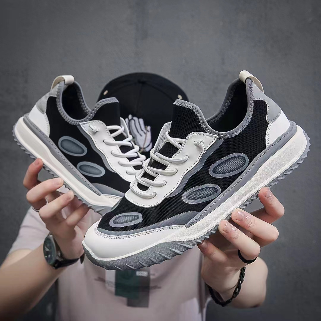 外贸库存男鞋潮流休闲运动鞋新品网面透气厚底低帮系带鞋子